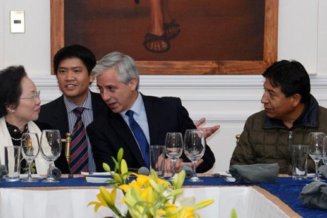 La vicepresidenta de Vietnam, García Linera y el canciller de Bolivia