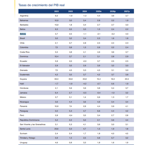 El último informe del Banco Mundial da cuenta que Bolivia tenderá el peor decrecimiento económico entre los países de la región durante el 2026.