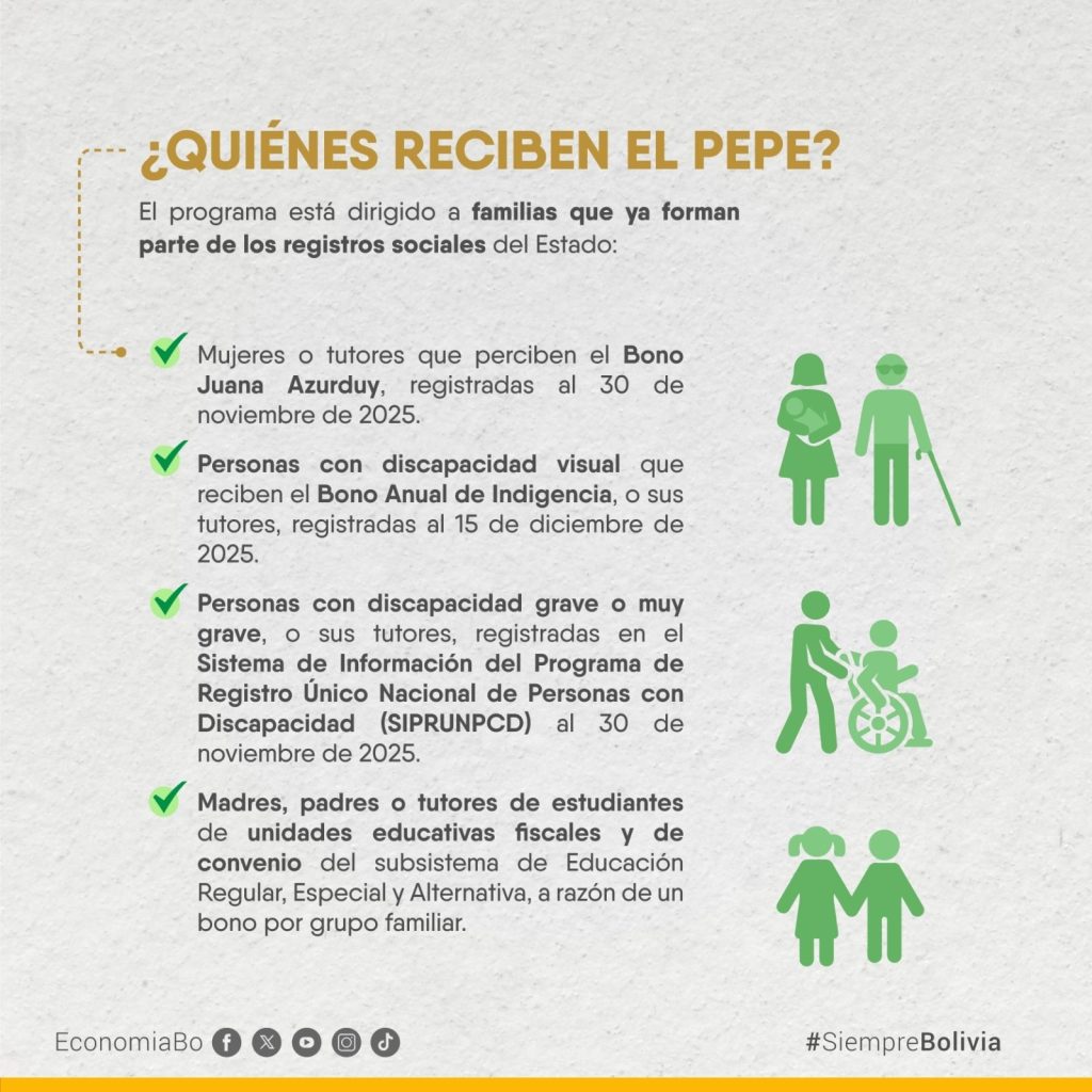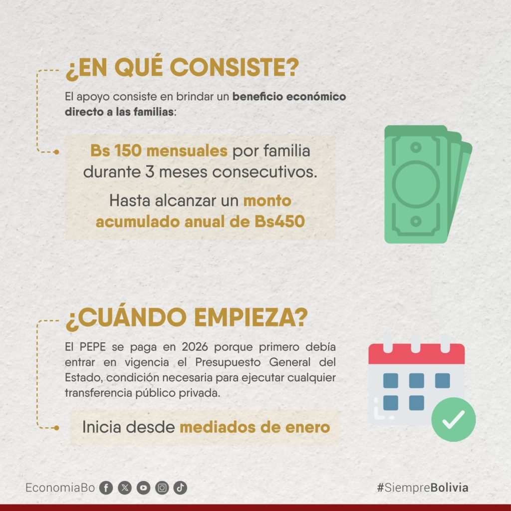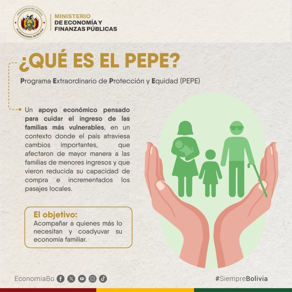 El ‘PEPE’ es un “apoyo económico pensado para cuidar el ingreso de las familias más vulnerables, en un contexto donde el país atraviesa cambios importantes, que afectaron de mayor manera a las familias de menores ingresos y que vieron reducida su capacidad de compra e incrementados los pasajes locales”, según información oficial del Gobierno.