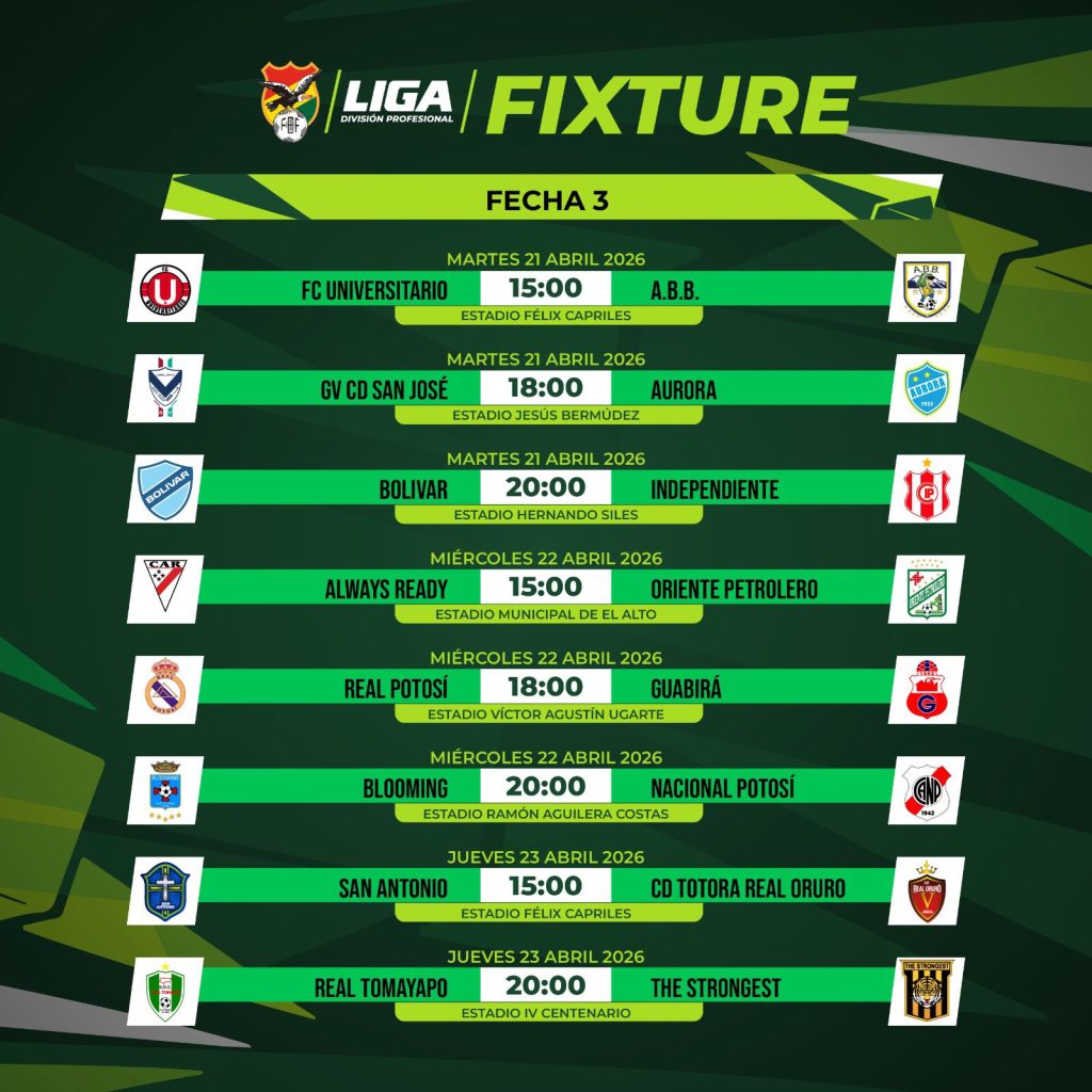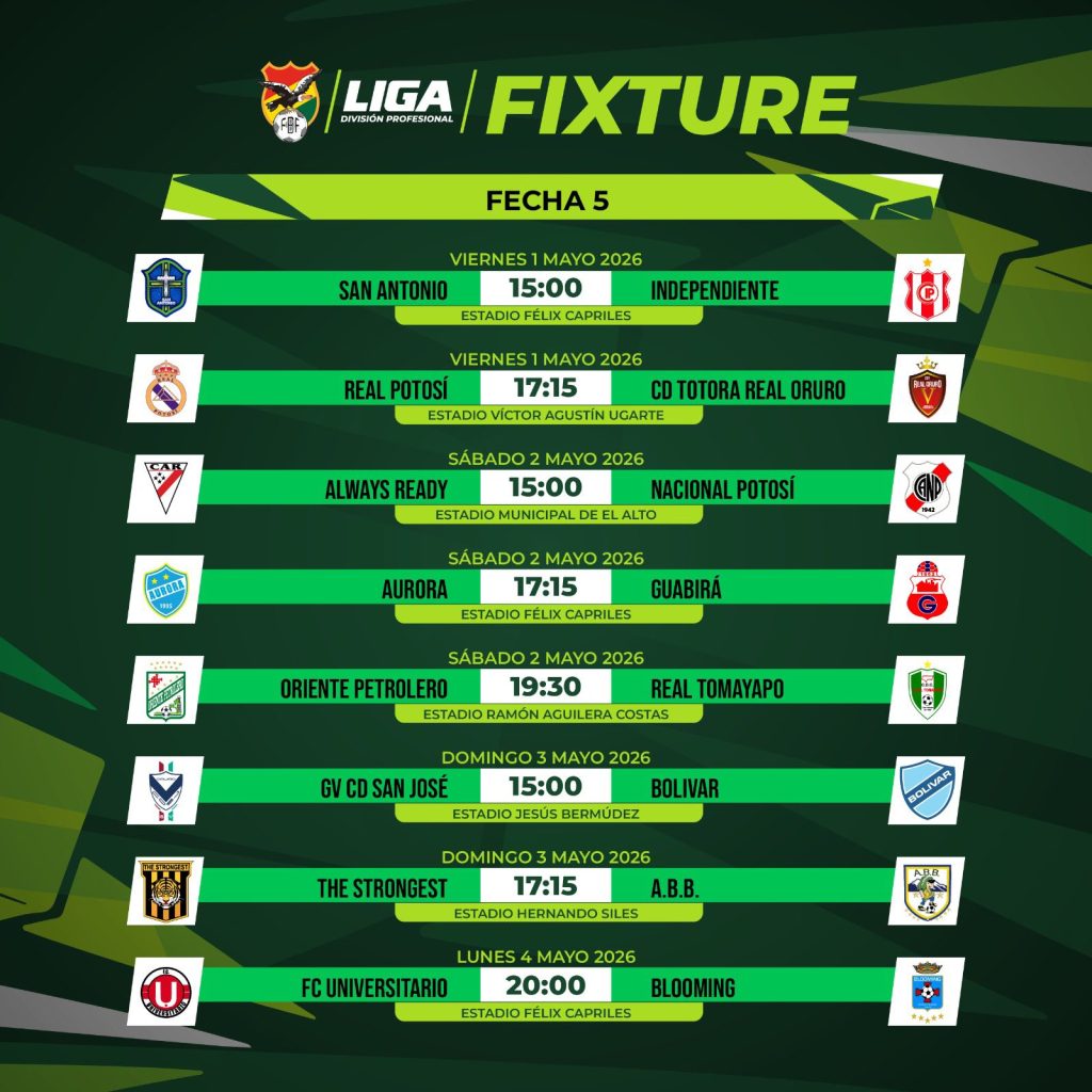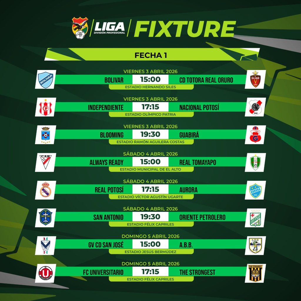 Tras dos torneos amistosos que se jugarán desde enero hasta el 1 de abril, este viernes arranca el campeonato oficial más importante, con el formato todos contra todos y que definirá al único campeón de la temporada. Bolívar y Real Oruro en el Hernando Siles de La Paz darán inicio campeonato (15:00).