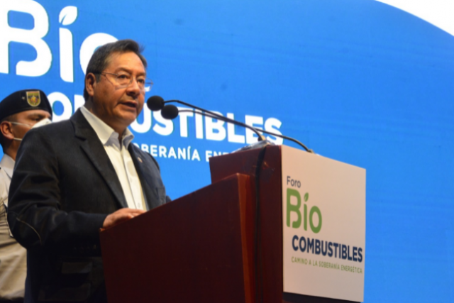 El presidente del Estado, Luis Arce, inauguró este viernes, en Santa Cruz, el “Foro de Biocombustibles”, que apunta a la producción de carburantes amigables con el medio ambiente en el país y reducir la importación y subvención de combustibles fósiles.