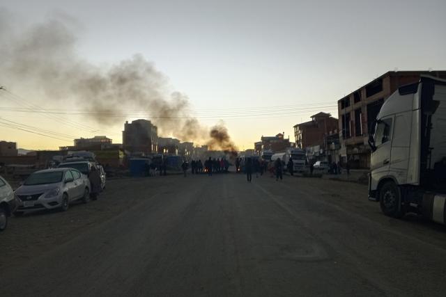 Los camiones también interrumpen el paso en la ruta hacia el Desaguadero, frontera con Perú, donde los movilizados queman llantas en la ruta.