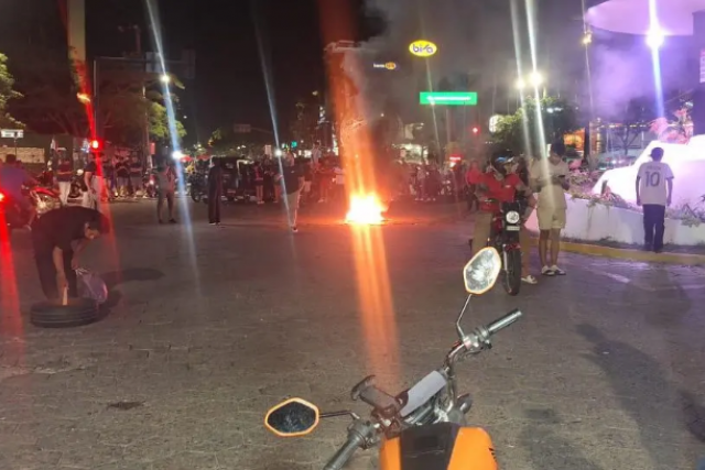 En la avenida del segundo anillo, se vio al menos una fogata mientras se prendía fuego a una llanta.
