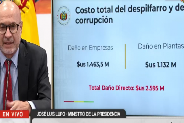 “El daño total de la corrupción en empresas públicas y plantas de industrialización es de 2595 millones de dólares”, aseveró el Ministro de la Presidencia.