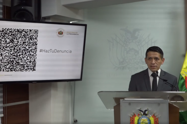 La Comisión habilitó un QR para recibir denuncias de corrupción. “No se limita solamente a hidrocarburos o al fondo indígena la corrupción es una tarea que tenemos nosotros como gobierno todas las denuncias en contra de todas las instituciones que tengan significado de corrupción van a ser recibidas y sistematizadas”, afirmó el Viceministro de Transparencia.
