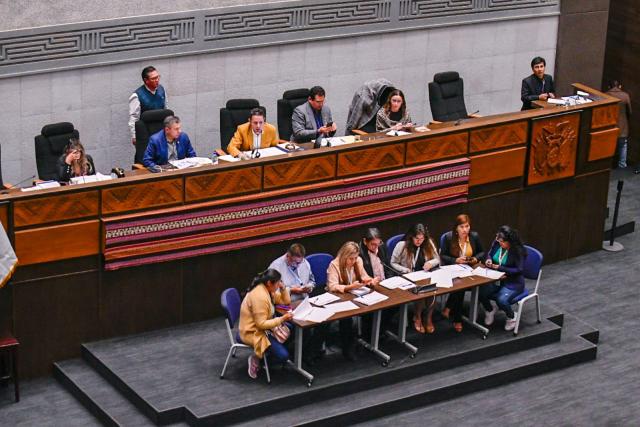 La sesión debía empezar a las 9 de la mañana, pero se postergó hasta medio día debido a la ausencia de parte de los legisladores, que no llegaron a tiempo por el paro del transporte que se cumple en La Paz.