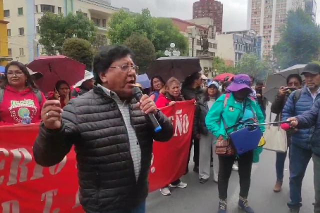 El sector realizó una marcha y un mitin en el centro paceño, en inmediaciones de la Federación Sindical de Trabajadores Mineros de Bolivia (FSTMB), donde se desarrolla el ampliado de la COB.