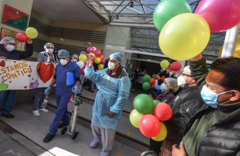 Con globos, pancartas, aplausos y arengas de júbilo, las enfermeras y médicos del nosocomio edil despidieron a la exautoridad. El 23 de junio se conoció que fue internado en terapia intermedia, luego que se contagió por segunda vez con el virus.