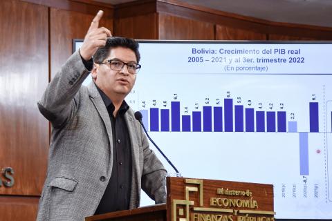El Ministro de Economía aseveró que el Modelo Económico Social Comunitario Productivo (MESCP) hace que Bolivia responda con crecimiento, baja inflación, reducción del déficit fiscal y de desempleo ante el contexto internacional adverso, tras la crisis provocada por la pandemia del Covid-19 y los efectos de la guerra entre Rusia y Ucrania, afirmó este lunes el ministro de Economía, Marcelo Montenegro.