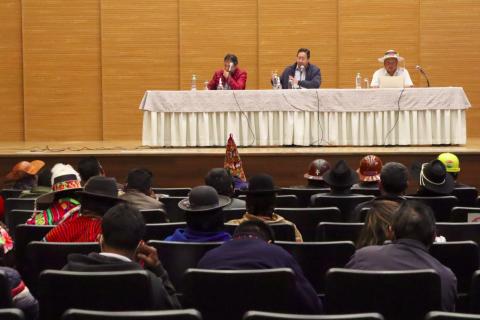 “Nos reunimos en Casa Grande del Pueblo con las hermanas y hermanos del Pacto de Unidad ampliado y coincidimos en que la masiva movilización por el Día del Estado Plurinacional demostró la fortaleza de nuestras organizaciones sociales. En unidad defenderemos el Proceso de Cambio”, aseguró el Presidente del Estado.