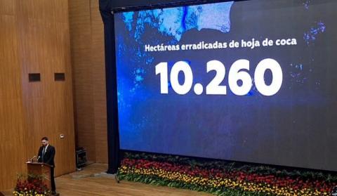 "Hemos visto que restando la superficie de 1.300 hectáreas se ha logrado que seamos el único país en la región, entre productores, que ha logrado una reducción neta (más erradicación que nuevos cultivos)", destacó el ministro de Gobierno, Carlos Eduardo del Castillo.