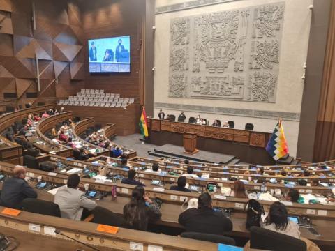 Este viernes, el Ministerio de Justicia junto a la Vicepresidencia el Estado Plurinacional de Bolivia, organizó el acto central en conmemoración del Día Internacional de los Derechos Humanos, con la participación de representantes de las víctimas de gobiernos inconstitucionales, defensores de derechos humanos, comunidad internacional y población en general.