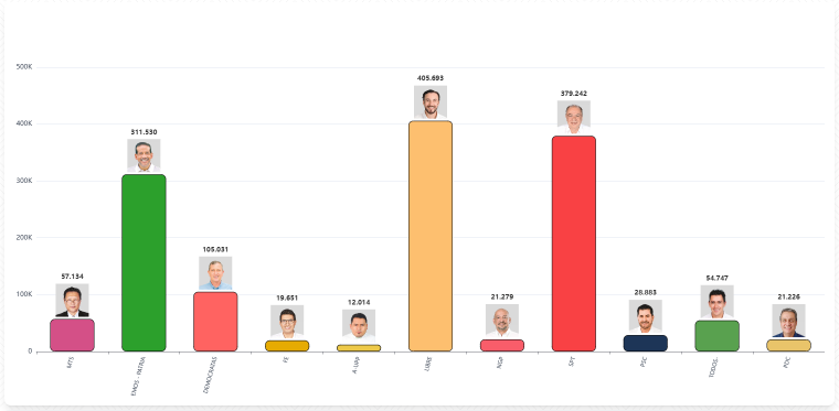 En cambio, quien lidera la votación a la Gobernación cruceña es Juan Pablo Velasco de Libertad y República con el 28,55% de los votos.