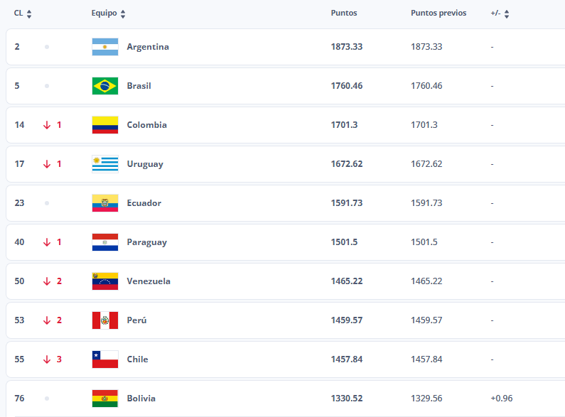 Ranking Conmebol: