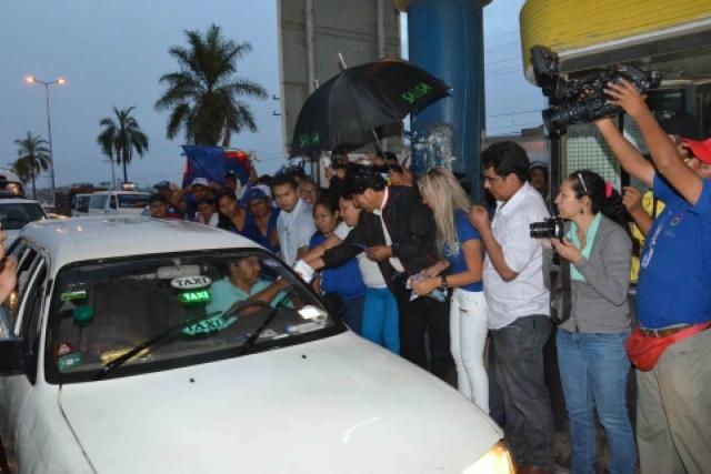 Morales se concentró en el lugar a partir de las horas 5.00, al igual que lo hizo el viernes en el peaje La Paz- El Alto, para empezar a repartir sus afiches, trípticos y otros materiales a todos los conductores que pasaban por la vía además de las personas que circulaban por la zona.