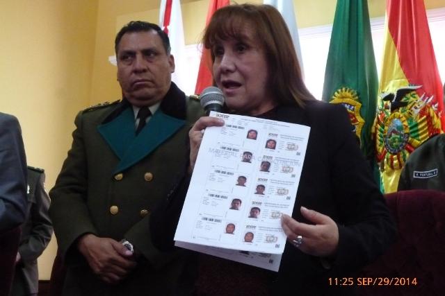 El comandante nacional de la Policía, Walter Villarpando, y la presidenta del TSE, Vilman Velasco. (Foto: ABI)
