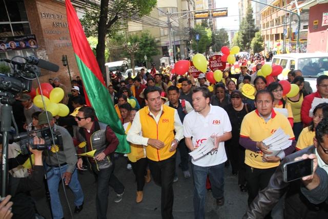 La Paz, 24 de marzo (Oxígeno).- La agrupación Soberanía y Libertad (Sol.bo) cerrará su campaña electoral este miércoles 25 de marzo en la plaza Mayor de San Francisco con un gran fiesta popular amenizada por Octavia, JachaMallku, Sin Ley y MalaKumbala, entre otros grupos musicales.