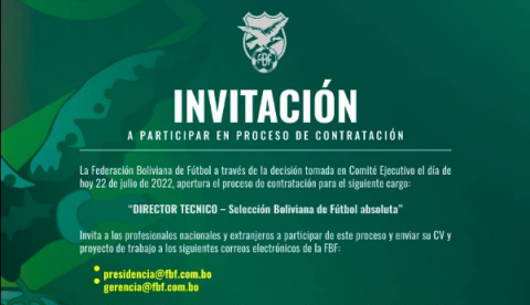 La pasada semana, la FBF lanzó una convocatoria para que todo interesado en ser el nuevo entrenador de la Selección mayor mande su currículum y plan de trabajo.