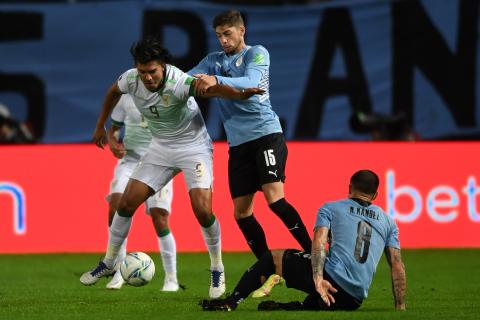 Bolivia perdió por 4 goles a 2 contra Uruguay en Montevideo. Marcelo Martins anotó ambos goles de la Verde y sigue como el goleador de las Eliminatorias.