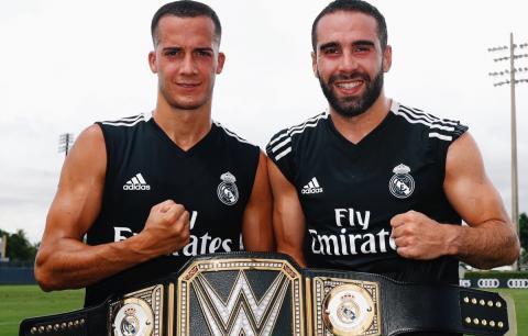 Dani Carvajal y Lucas Vázquez fueron los encargados de recibir el icónico cinturón que conmemora su victoria número 13 en la Champions.