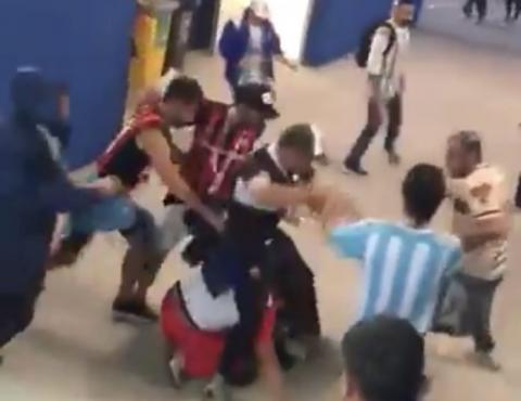 La agresión fue grabada por un aficionado a la salida del estadio Nizhni Novgorod.