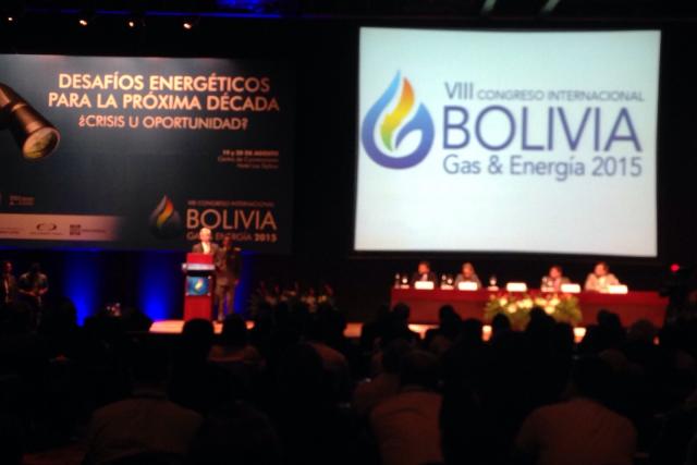 Recordó que hace un año los precios del petróleo estaban en algo más de 100 dólares el barril (WTI), y el millar de BTU del gas natural en 4,5 dólares, y ahora el petróleo en menos de 50 dólares y el gas el millar de BTU de gas por debajo de los 3 dólares. Añadió que el reto de esta crisis es convertir a Bolivia en el centro energético y la industria hidrocarburífera de esta parte de América.