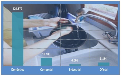 En 2013, el mayor consumo de agua potable corresponde al de tipo doméstico con 121.675.000 metros cúbicos y en segundo lugar, el de uso comercial con 19.103.000 metros cúbicos.