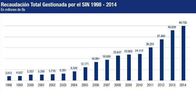 El SIN logró en 2014 una recaudación de Bs 49.720 millones, la más alta en 17 años