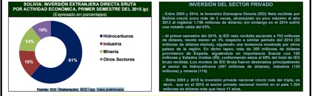 Los montos de IED Bruta fueron destinados principalmente al sector de hidrocarburos (491 millones de dólares), industria (120 millones) y minería (110).