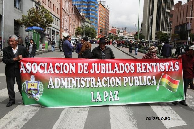 La Paz, 16 de febrero (Oxígeno).- Cientos de jubilados tomaron este martes las céntricas calles y avenidas de la ciudad de La Paz en demanda a las autoridades nacionales el pago de un doble aguinaldo para el sector.