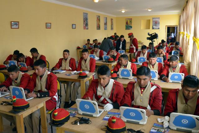 Durante el acto de inauguración de ese nuevo telecentro, Morales dijo que ahora Bolivia está en otros tiempos y por eso se hace esta dotación de computadoras que se inicia en el Regimiento de los Colorados de Bolivia.