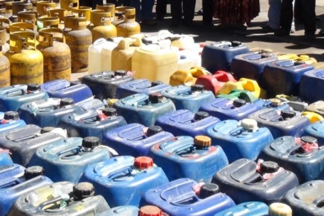 “Al interior de un minibús se encontró bidones de 20 litros de capacidad con diesel oíl y gasolina, debajo y encima de los asientos, además de 25 cilindros de GLP cubiertos con mantas”, informa una nota de prensa institucional de la ANH.