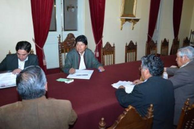 A las 05.00 se llevó a cabo la reunión entre el viceministro de pensiones, Mario Guillen y Jubilados en el que acordaron conformar comisiones de trabajo después de las elecciones generales para buscar fuentes de financiamiento el bono solicitado por los jubilados, de acuerdo a las órdenes recibidas del presidente Morales al ingresar a la reunión.