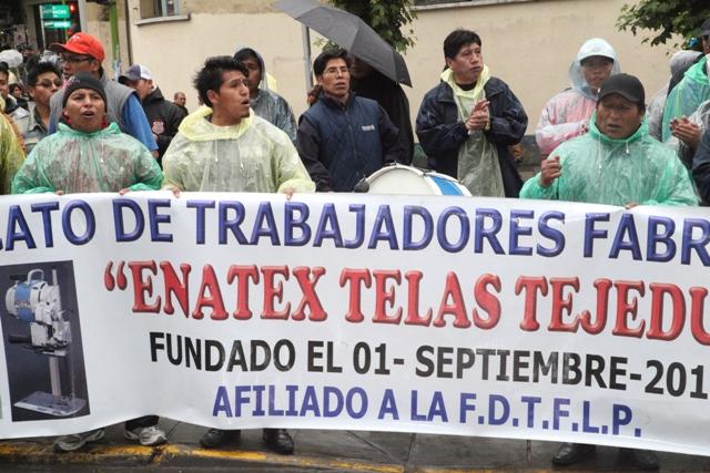 La Paz, 7 de enero (Oxígeno).- El ministro de Trabajo, Daniel Santalla, condicionó, este miércoles, el pago de sueldos a los trabajadores de la Empresa Pública Nacional Textil (Enatex), a la suspensión de la protesta por salarios.