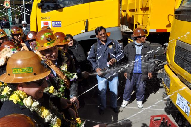 La entrega de volquetas se da a un día de que Álvaro García Linera promulgara la nueva Ley de Minería que obliga a que todo contrato entre cooperativistas y empresas privadas cuenten con el aval del Estado para la explotación de recursos en el país.