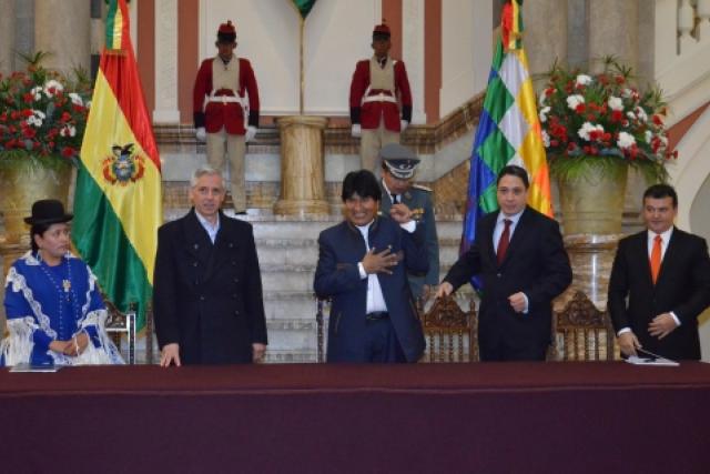 En acto realizado en Palacio de gobierno, el mandatario destacó el trabajo de técnicos y empresarios que colaboraron en la elaboración de la normativa que a criterio de Morales garantiza la seguridad jurídica.