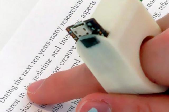 Se llama FingerReader y leerá las palabras de un texto a medida que el usuario pasa el dedo sobre ellas usando una pequeña cámara.