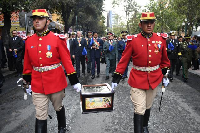 Este jueves 23 de marzo, Instituciones del Gobierno, delegaciones diplomáticas, miembros de las Fuerzas Armadas y Policía entregaron ofrendas florales al pie del monumento a Eduardo Abaroa, en La Paz, en conmemoración de los 138 años de la pérdida del mar.