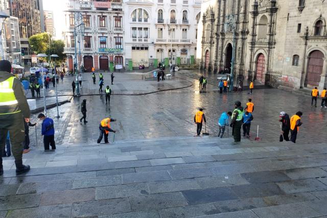 En la ciudad de El Alto, grupos de jóvenes y adultos de diferentes edades detenidos por consumir bebidas alcohólicas salieron el fin de semana a cumplir el servicio de trabajo comunitario para limpiar plazas, calles y espacios públicos.