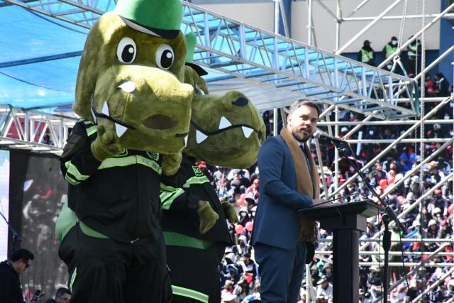 El Ministerio de Gobierno presentó a ‘Dino’, la nueva mascota de la Policía boliviana