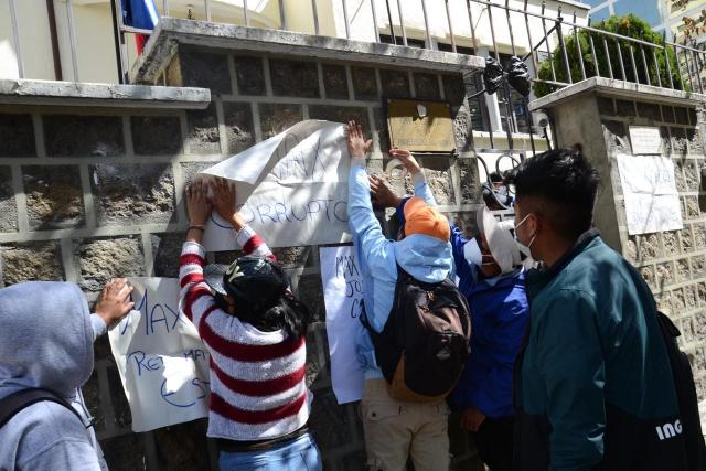 Estudiantes de la Universidad Mayor de San Andrés (UMSA), Universidad Pública de el Alto (UPEA) e incluso de la Universidad San Francisco de Xavier de Chuquisaca llegaron y protestaron con carteles en mano.