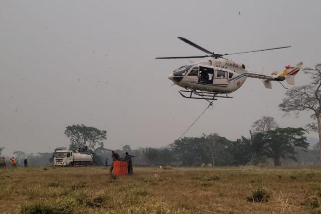 El Ministerio de Defensa informó que entre los municipios de Rurrenabaque, San Borja y San Buenaventura, están dos helicópteros realizando descargas de forma permanente.