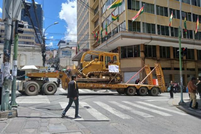 Maquinaria pesada bloquea la calle Mercado de La Paz.