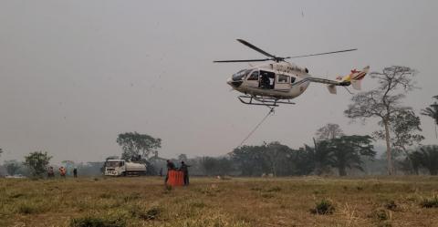 El Ministerio de Defensa informó que entre los municipios de Rurrenabaque, San Borja y San Buenaventura, están dos helicópteros realizando descargas de forma permanente.
