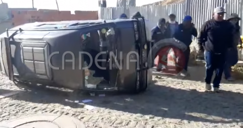 Según imágenes de video compartidas por Cadena A, los enfrentamientos ocurridos esta mañana derivaron en dos conductores heridos y dos minibuses pertenecientes al sindicato Señor de la Exaltación volcados. La policía tuvo que intervenir en el lugar.