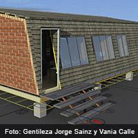 La vivienda bioclimática sostenible está concebida para ser levantada en ocho días porque se construye con materiales o paneles prefabricados, ecológicos y provenientes del reciclaje. Según la propuesta, las paredes son de madera plástica, un material ahora construido por el Gobierno Municipal de La Paz, y la cubierta de tetrapack (también elaborado con desechos de papel estañado); además la propuesta prevé construir la casa aislada del suelo húmedo, suspendida unos centímetros del suelo por columnas apoyadas en suelo-cemento.