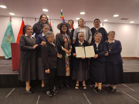 La ceremonia, presidida por la senadora Ana María Castillo Negrette, reconoció la “labor incansable de las Hermanas Misioneras Cruzadas de la Iglesia (MCI) en el acompañamiento a las comunidades indígenas, originarias y campesinas del país, contribuyendo al fortalecimiento de los valores espirituales y sociales en diversas regiones”.