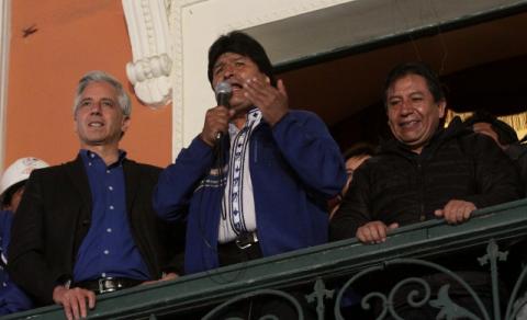 En un discurso desde los balcones del Palacio de Gobierno, el presidente y candidato por el MAS, Evo Morales, dijo que éste es el triunfo de los bolivianos que demuestra su antiimperialismo y anticolonialismo.