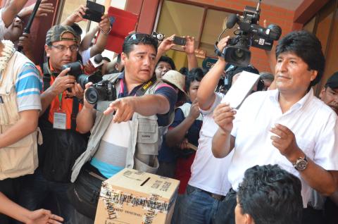 Desde su departamento ubicado en la avenida 6 de Agosto de la ciudad de La Paz, García Linera, junto a su esposa Claudia Fernández, felicitó a los bolivianos tanto en Bolivia como en el exterior, la voluntad democrática. Afirmó que espera romper el record de asistencia de 2009 y convocó a todos los ciudadanos a ejercer ese derecho en las urnas durante esta jornada.