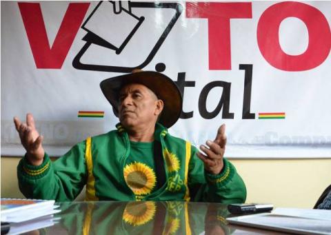 El líder indígena hizo la propuesta en una entrevista en el sector electoral Voto Vital del periódico Oxígeno.bo. La puesta en marcha de dispositivos electrónicos para el control de “maltratadores” forma parte del programa de gobierno de esta fuerza política.